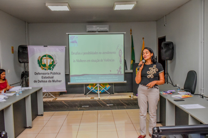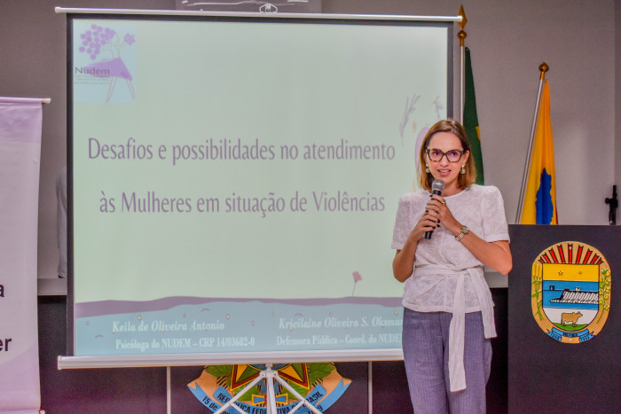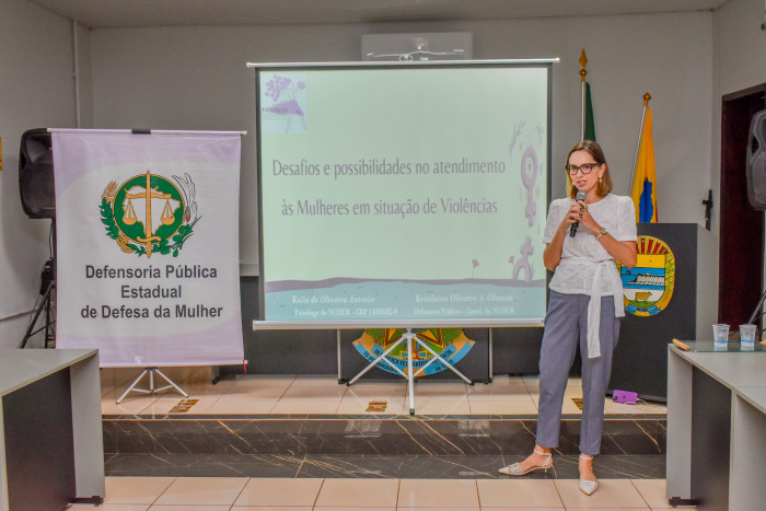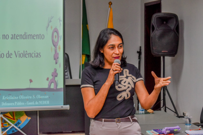 A formação, que contou com a participação de funcionários da Assistência Social, da Educação e da Saúde, além do colegiado do Conselho Tutelar, foi conduzida pela defensora pública e coordenadora do NUDEM, Kricilaine Oliveira Souza Oksman, e pela psicóloga Keila de Oliveira Antônio.
